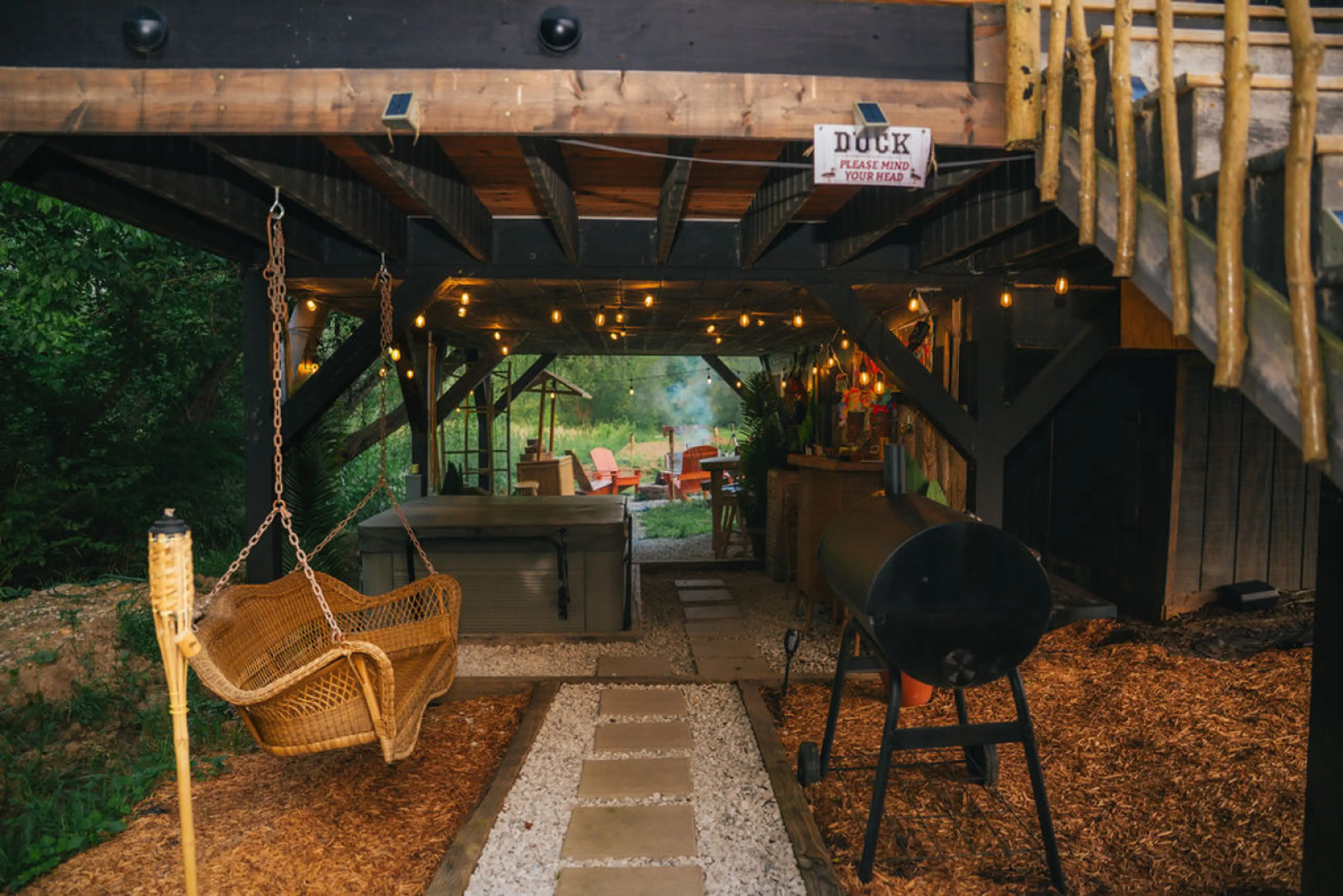 -Welcome to the Ruby Ranch Treehouse – A Tranquil Retreat Perfect for romantic escapes, family vacations, or peaceful getaways Handcrafted treehouse surrounded by nature and tranquility Features milled walnut ceilings and untreated Kentucky pallet wood Custom-built cabinets, shelves, and stair rails...